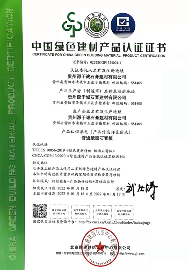 貴州源于誠(chéng)石膏建材有限公司【官網(wǎng)】